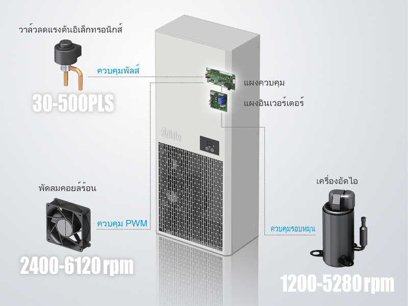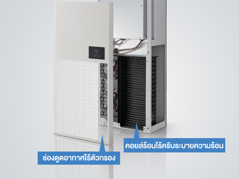 เนื่องจากเป็นระบบหมุนเวียนภายใน นอกจากจะทำความเย็นแล้ว ยังปกป้องอุปกรณ์อิเล็กทรอนิกส์ด้วยการกำจัดความชื้นและป้องกันฝุ่น