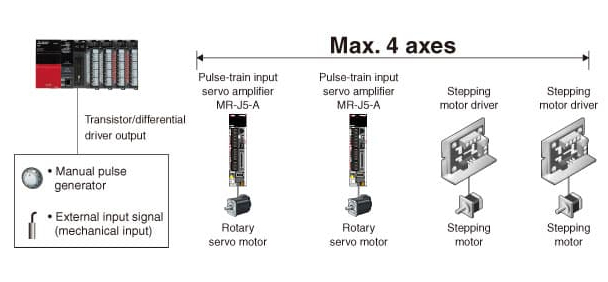 โมดูล Positioning ภายใน MELSEC iQ-R Series สามารถควบคุมการทำงานได้สูงสุดถึงสี่แกน รวมถึงมีความสามารถในการรับส่งข้อมูลความเร็วสูง (5M พัลส์/วินาที*1) ซึ่งโมดูล Positioning นี้เป็นโมดูลอเนกประสงค์ที่สามารถรองรับการเชื่อมต่อกับอุปกรณ์ Motion ที่หลากหลาย เช่น วงจรขยายเซอร์โว, คอนโทรลเลอร์สร้างสัญญาณพัลส์, เซอร์โวแอมพลิฟลาย, สเต็ปปิ้งมอเตอร์ที่มีทรานซิสเตอร์ หรืออินเทอร์เฟซอินพุตไดรเวอร์ เป็นต้น
