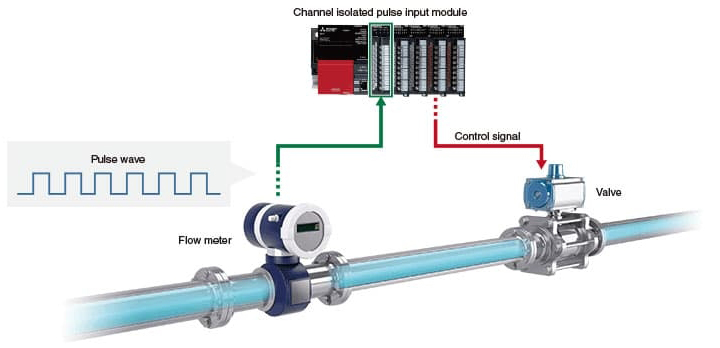 โมดูลแยกช่องสัญญาณอินพุตพัลส์ (Multiple pulse input functions embedded) สามารถวัดจำนวนพัลส์อินพุตต่างๆ เช่น ความเร็วของเหลว, ความเร็วในการหมุนอุปกรณ์ Motion, อัตราการไหลของเหลว, ปริมาณของเหลว และอัตราการไหลสะสม โดยค่าพัลส์อินพุตจะอัปเดตทุกๆ 10 ms พร้อมกับค่าปริมาณสะสมและจำนวนพัลส์ ซึ่งหลังจากนั้นจะมีการประมวลผลค่าเฉลี่ยการเคลื่อนที่และจะอัปเดตที่ค่าการนับรอบทุกครั้ง