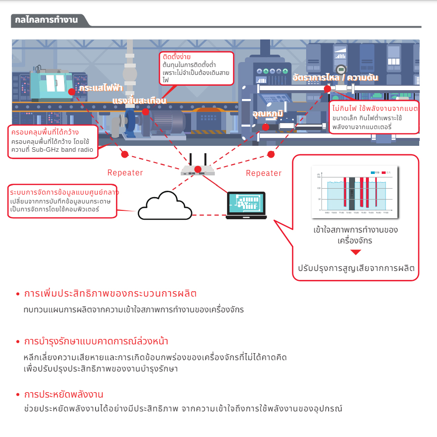 • ตรวจสอบสถานะการทำงานของอุปกรณ์ ประหยัดพลังงาน และเพิ่มประสิทธิภาพการผลิต